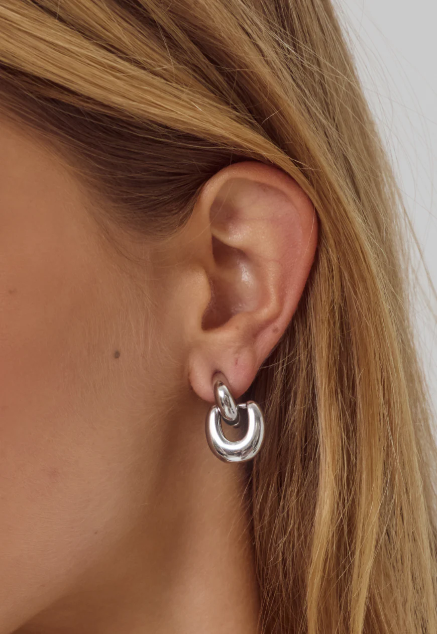 A petite statement with sculptural appeal. The Gabrielle Earrings feature interlocking, high-polish curves crafted in High Polished Stainless Steel. Versatile enough for both a subtle statement or a stacked moment.