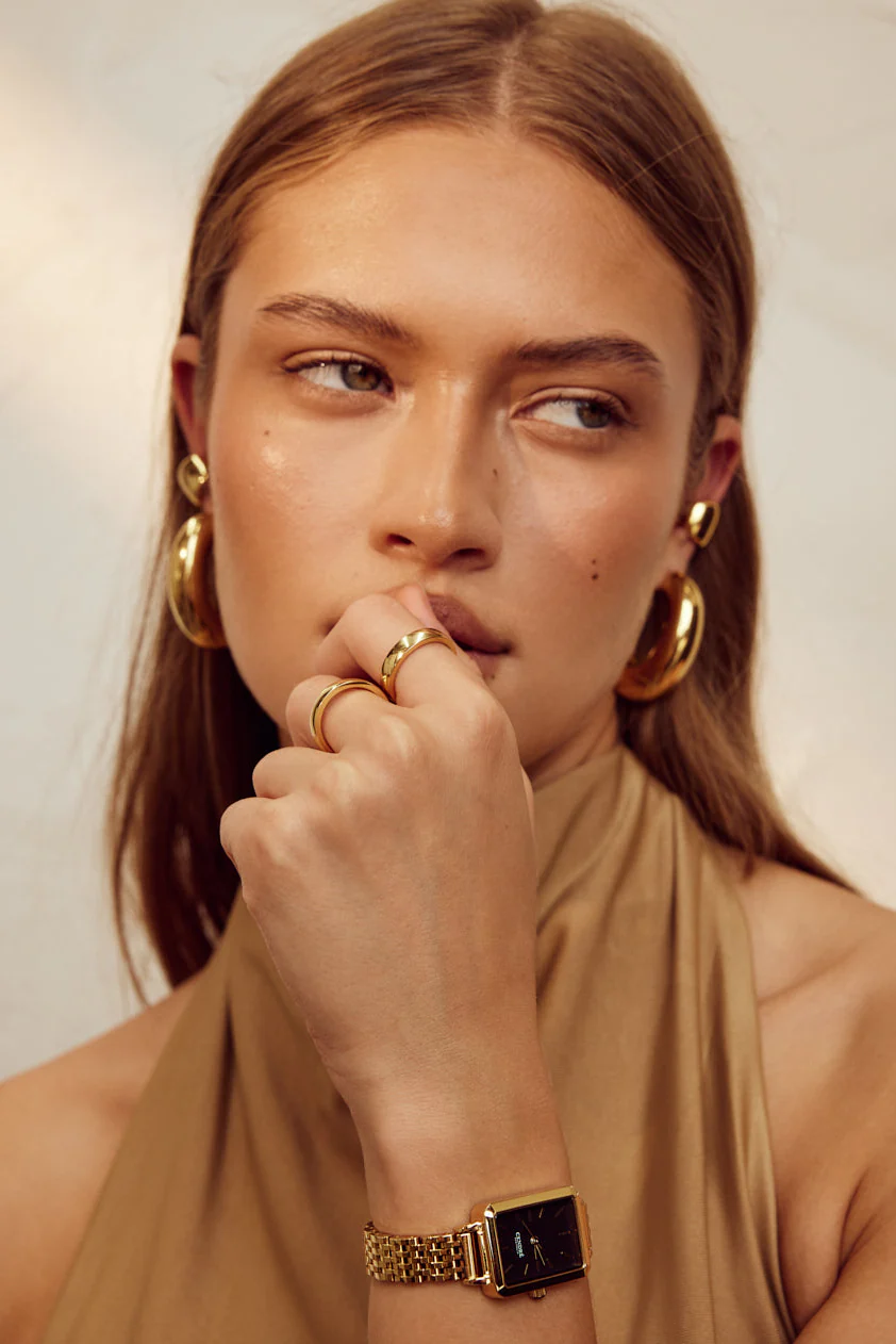 What's better than a standard pair of gold hoops? The Kiki Hoop Earrings. A contemporary take on the much-loved hoop design, with a slightly modified shape. Crafted from 18k gold plated stainless steel, these hoops are lightweight despite their solid design.