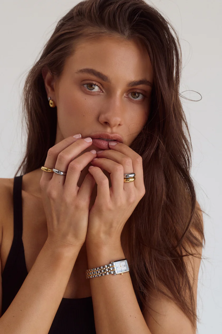 The Pia Ring is the engine of every jewellery box. Put simply, it has the power to drive every outfit. No need to fret over making sure your jewellery pairs well with your outfit, this minimal 18k gold plated ring works with virtually everything.